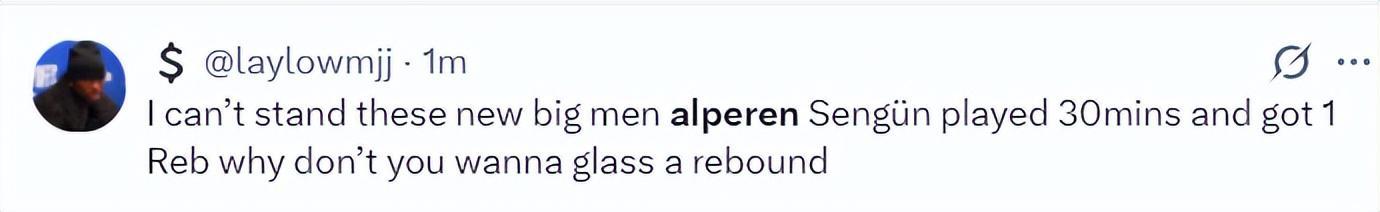 质疑NBA的球迷也有:1.NBA这是被操纵了吗?一个中锋打了半场没有篮板球?